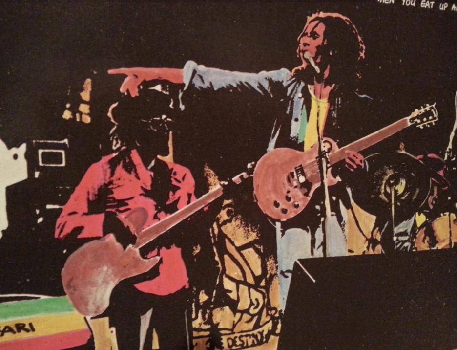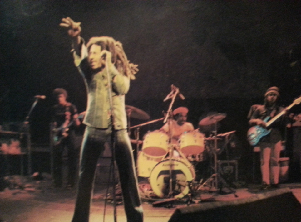 The musical and rhythmic innovation of Bob Marley's reggae music is a landmark in groove. Along with the drums of Carlton Barrett and the bass of Aston "Familyman" Barrett, Marley's music brought new grooves to the world. His reggae developed from earlier versions of Jamaican music such as ska, rock steady and the folk drum rhythms and chants of the Nyabingi. Though his collaboration with the original Wailers, Peter Tosh and Bunny Wailer, carried from 1963 until 1974, Marley eventually moved on to fronting the band himself. Bob Marley's music exposed the world to unique reggae concepts such as the "steppers beat," the "one drop," the rhythm guitar "skank," the "bubbling" low-mid organ offbeat patterns and of course the deep bass lines that drove the music.